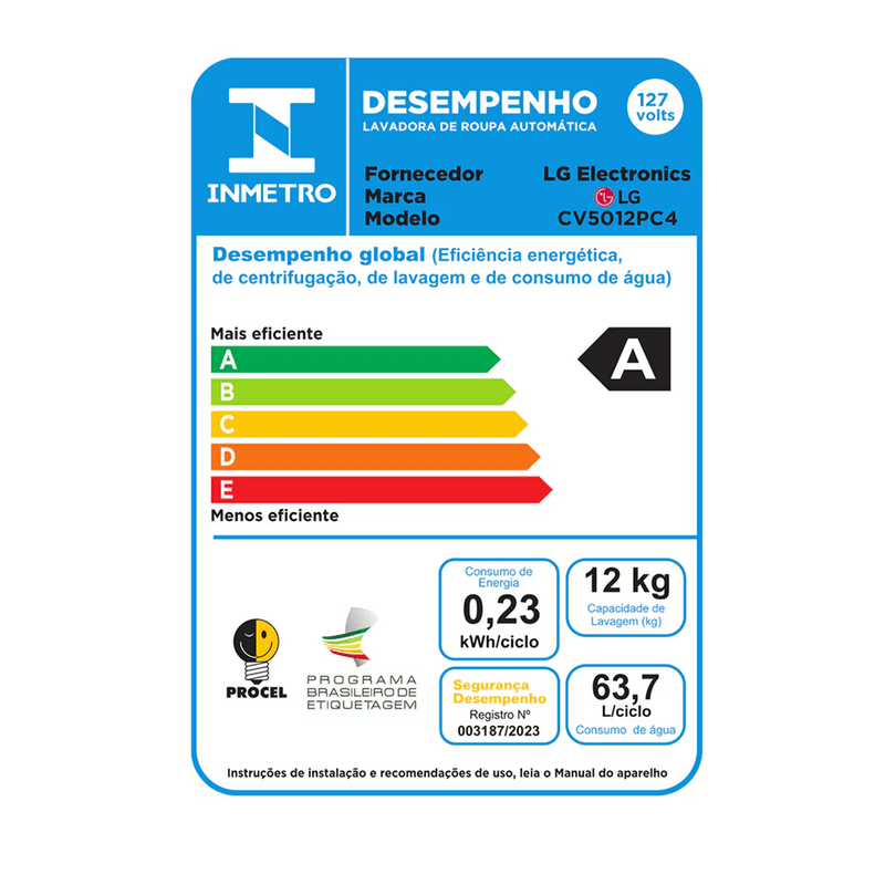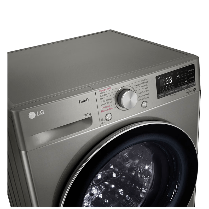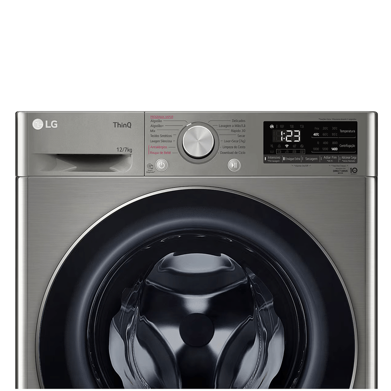 Máquina de Lavar e Secar LG 12KG CV5012PC4 Inox 127VPrincipais Recursos- Mais Capacidade: Lava até 12 kg e seca 7 kg, ideal para cargas grandes e volumosas.