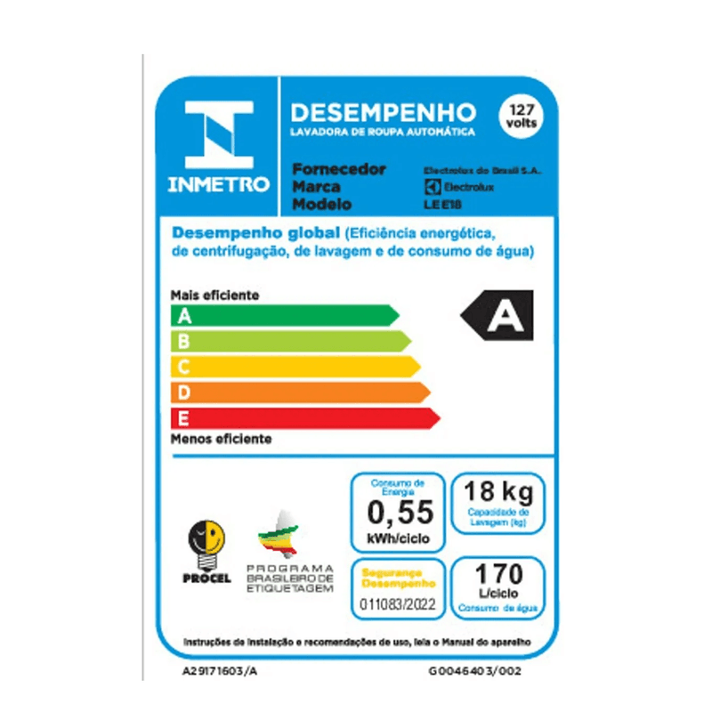 Máquina de Lavar Electrolux 18kg Efficient Branca (LEE18)