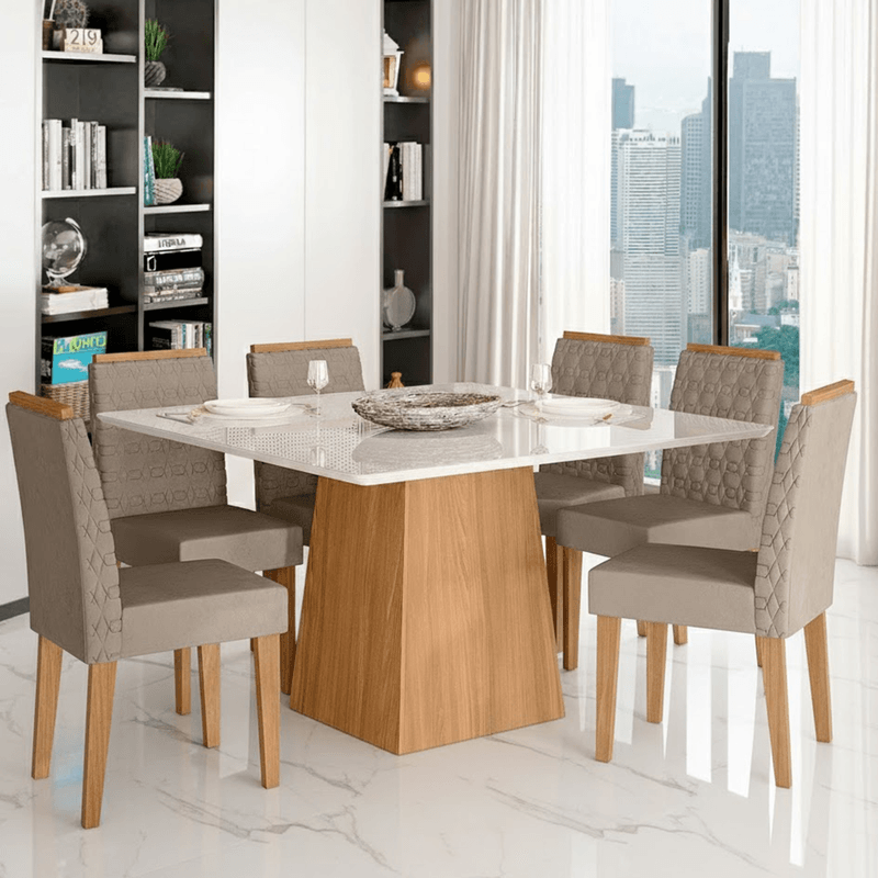 Este conjunto combina materiais premium e um design moderno, ideal para quem busca um ambiente de jantar funcional e elegante.