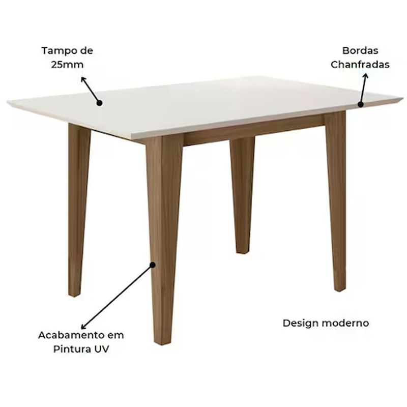 Mesa de Jantar Retangular Poliman Kate com 4 Cadeiras Jade Carvalho