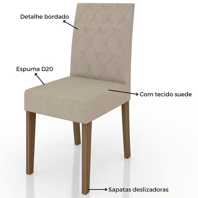 - Encosto estofado com bordado sutil: Mais charme e requinte.
