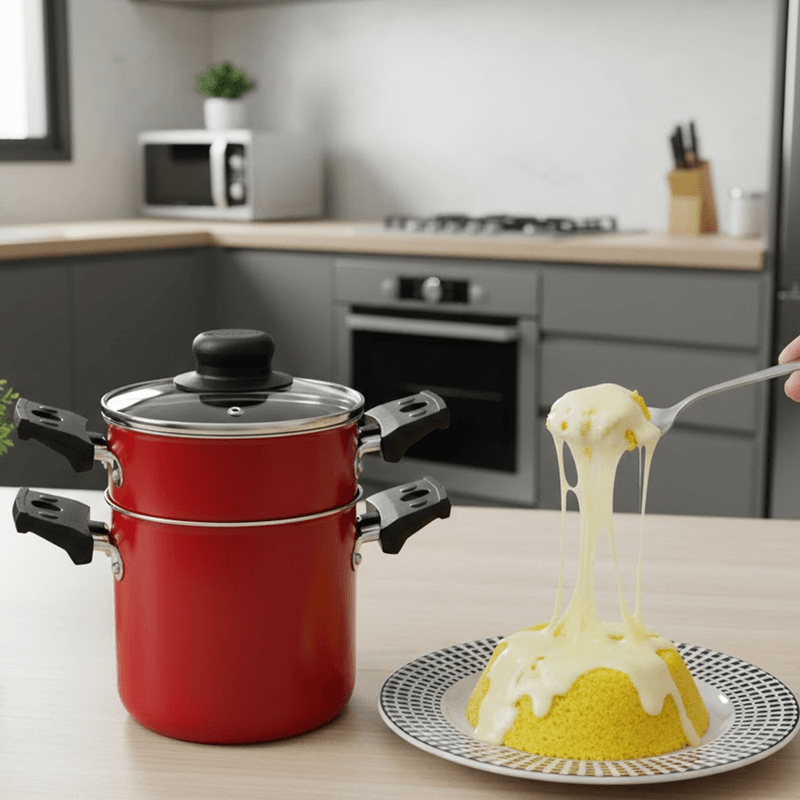 A Mini Cuscuzeira Multiflon 52210 foi desenvolvida para quem deseja preparar porções individuais de forma prática, rápida e com excelente resultado. Fabricada em alumínio de alta pureza e revestida com antiaderente de última geração, ela entrega cozimento uniforme, fácil limpeza e maior durabilidade, além de um visual moderno em vermelho.