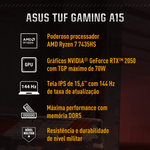Notebook Gamer com AMD Ryzen 7 7435HS e NVIDIA GeForce RTX 3050 – 15,6” Full HD 144HzDesempenho de Ponta Equipado com o