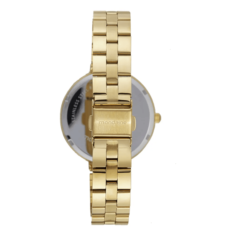 Este relógio analógico feminino Mondaine combina sofisticação e elegância. Com caixa dourada de 4,1 cm e mostrador harmonioso na mesma cor, o modelo é complementado por uma pulseira de aço inoxidável, garantindo conforto e estilo para o dia a dia. O kit ainda inclui uma pulseira adicional sofisticada, tornando o conjunto versátil e elegante.