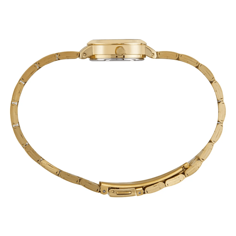 - Pulseira: Aço escovado e polido, com acabamento trabalhado