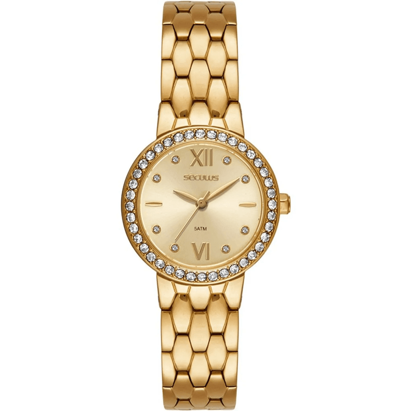 O Relógio Feminino Seculus 23747LPSVDS1 é a combinação perfeita entre elegância e sofisticação. Com acabamento dourado intenso e design refinado, ele se destaca como um verdadeiro acessório de luxo. Seu mostrador delicado com algarismos romanos e detalhes em pedras proporciona um brilho especial, ideal para valorizar qualquer look, seja no dia a dia ou em ocasiões especiais.