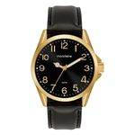 Relógio Masculino Mondaine Dourado e Couro Preto: Estilo Clássico com Sofisticação