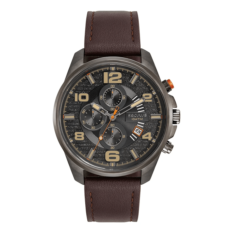 RELÓGIO MASCULINO SECULUS 77328GPSVSC3Estilo e Sofisticação Design robusto e moderno, ideal para quem valoriza estilo e funcionalidade. Com caixa em aço inox grafite e pulseira de couro marrom, esse modelo traz presença e elegância ao pulso masculino.