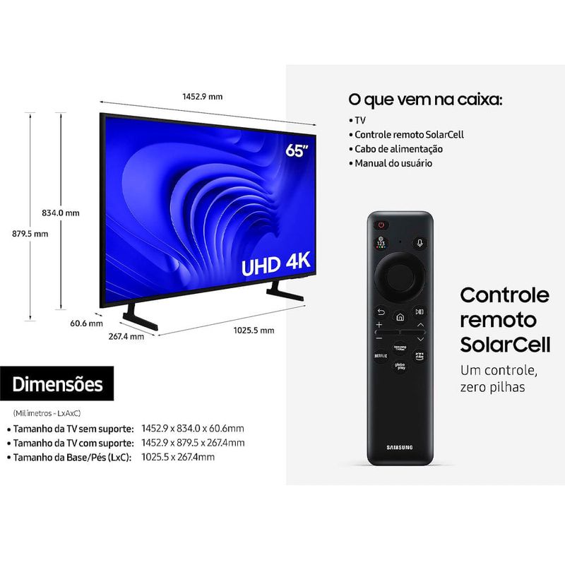 Com a Smart TV Crystal UHD 4K 65" Samsung 65DU7700, você tem qualidade de imagem superior, funcionalidades avançadas e uma experiência de entretenimento completa em um único dispositivo.