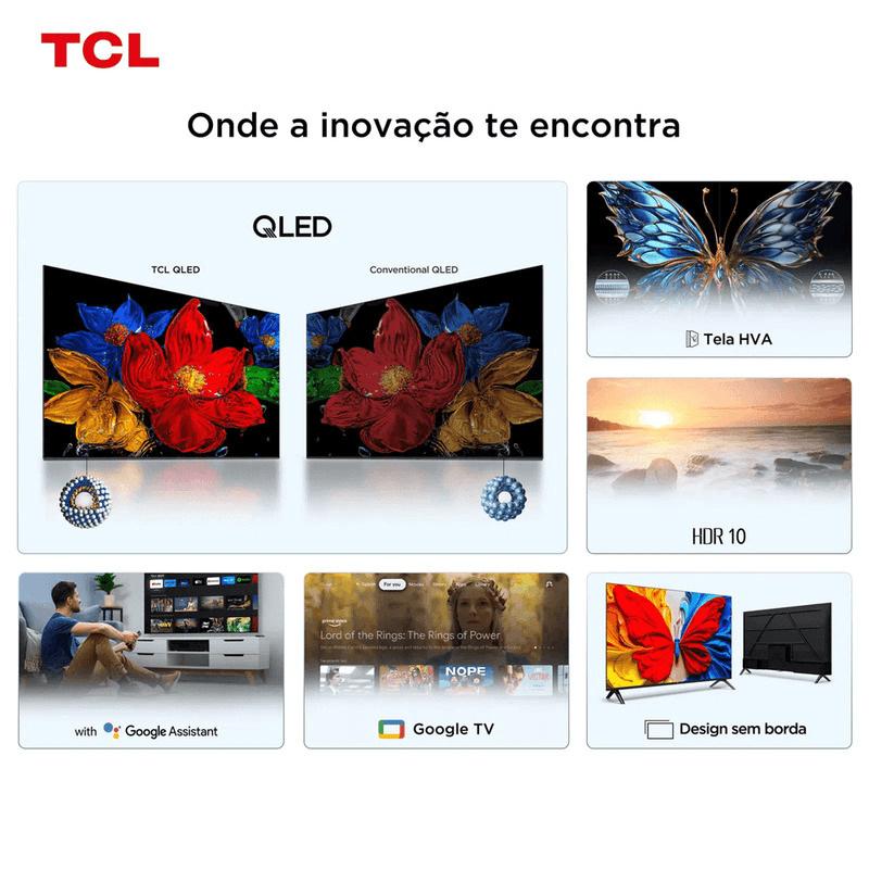 Leve para casa a TCL 43” S5K, uma Smart TV com tela QLED para cores mais vivas e realistas, som potente e a fluidez do sistema Google TV. Ideal para quem busca qualidade de imagem, praticidade e conectividade em um só aparelho.
