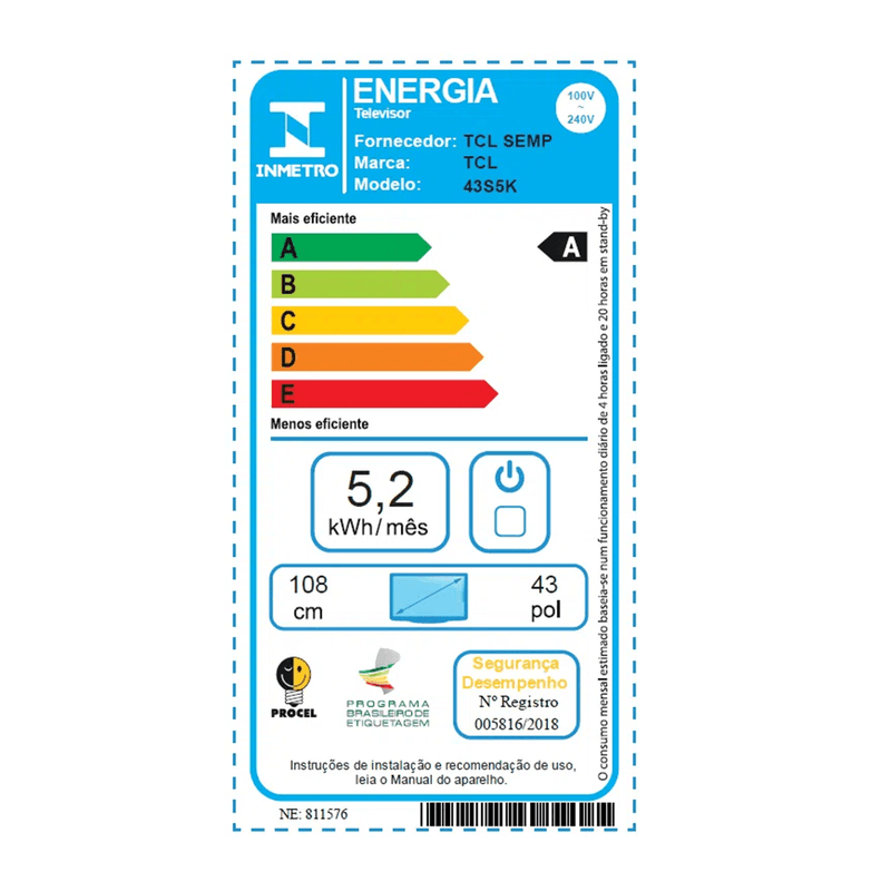 SMART TV TCL 43” S5K – Qualidade QLED e Conectividade com Google TVImagem e Tela- Tamanho: 43 polegadas