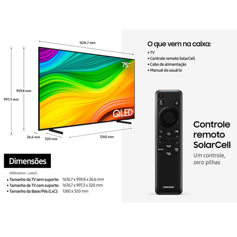 - Processador Quantum 4K: Otimiza automaticamente a qualidade da imagem para proporcionar a melhor experiência de visualização.
