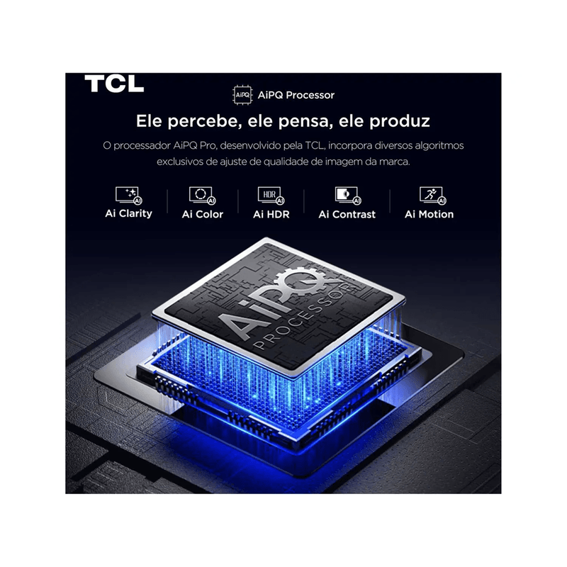 Imagem e Tecnologia Desfrute da qualidade excepcional da tela QLED de 75” com resolução 4K UHD, que entrega cores vibrantes e brilho intenso graças aos pontos quânticos. A tecnologia antirreflexo garante uma visualização confortável mesmo em ambientes iluminados. O processador AiPQ com inteligência artificial ajusta brilho, contraste e cor para imagens sempre perfeitas.