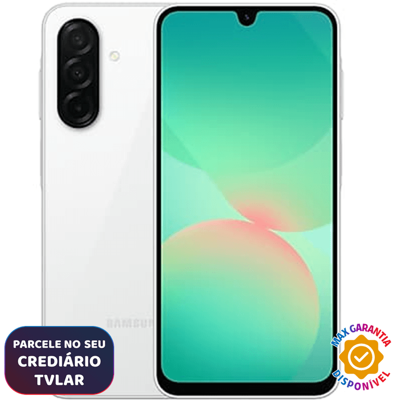 Smartphone Samsung Galaxy A26 5G 256GB/8GB - Branco- Tela Super AMOLED 6,7”: Desfrute de uma experiência visual envolvente com cores vibrantes e detalhes nítidos, ideal para vídeos e jogos com taxa de atualização de 120 Hz.