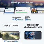 - Tela AMOLED dinâmico FHD+ de 6,7” com até 1900 nits e 120Hz.