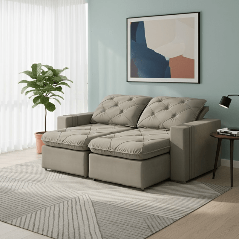 Sofá Singapura 200cm – Veludo Marrom Claro | Konfort