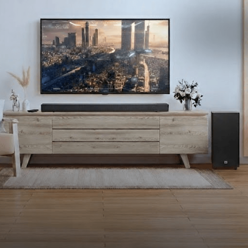 - Subwoofer sem fio de 6,5” para graves profundos e impactantes