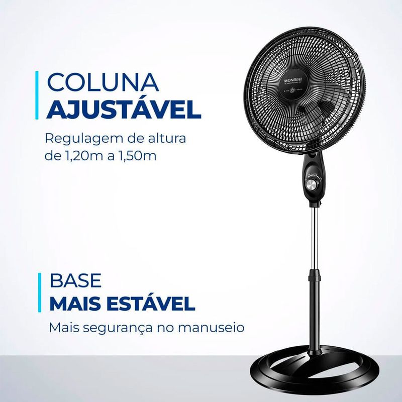 - Altura Regulável: Ajuste a altura do ventilador entre 1,19 e 1,50 metros, conforme sua necessidade.