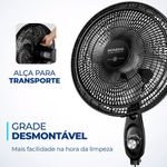 - Alça de Transporte: Permite que o ventilador seja transportado entre os cômodos da casa com facilidade.