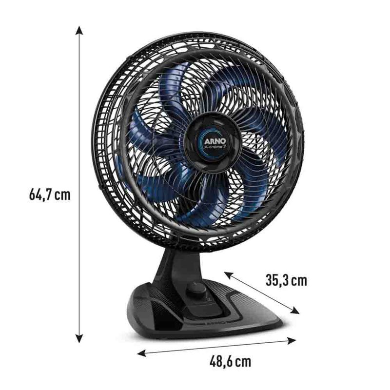 Garantia de 1 ano: Fabricado pela Arno, marca líder no mercado brasileiro há 80 anos, o Ventilador X-treme 7 combina segurança e durabilidade, sendo uma escolha confiável para qualquer ambiente.